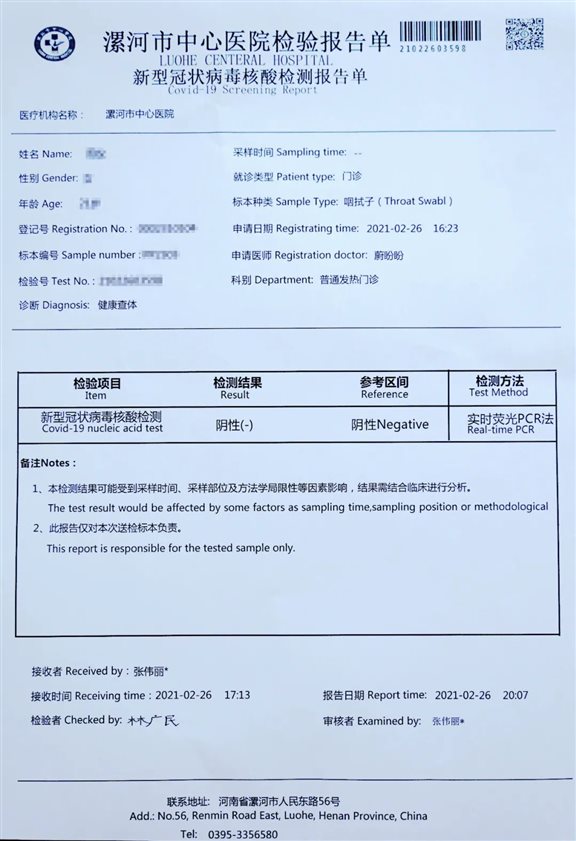 漯河市中心医院核酸检测查询报告核酸检测出报告时间: