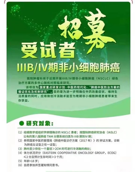 本中心柔性引进了北京中医药大学附属东方医院胡凯文专家团队,并于近期开始招募晚期非小细胞肺癌患者。