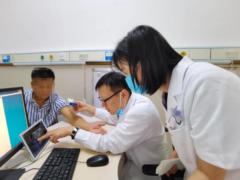 尿毒症长期血液透析患者易出现各种血管通路并发症,包括狭窄、血栓形成、瘤样扩张、感染、纤维鞘形成等,上午也有多名血管通路问题患者前来就诊,李俊华教授认真查看每个患者的内瘘血管和中心静脉导管,运用先进的超声工具查看血管情况,包括测量动静脉内径和流量等,并一丝不苟的画出内瘘血管走向,给出科学合理的血管通路手术方案,包括高位瘘、人工血管内瘘等。李教授耐心回答患者疑惑,并向患者及家属详细讲解诊疗方案及注意事项,受到了大家的交口称赞。