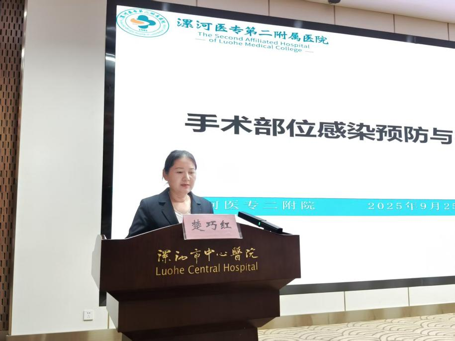 漯河市医院感染质控中心副主任委员、医专二附院感控科主任楚巧红以《手术部位感染预防与控制》为题,从范围与术语定义、管理要求、预防与控制措施等方面进行了详细讲解,深入剖析了手术部位感染防控中的常见问题,让大家对手术部位感染防控的重要性有了更加深刻的理解。