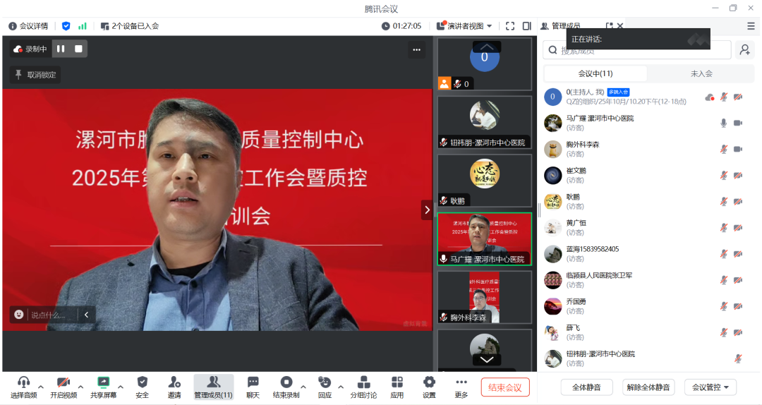 本次线上会议的顺利召开,不仅为漯河市胸外科同道提供了一个高效便捷的学术交流平台,及时传达了最新的质控要求与学术进展,更有力地促进了全市胸外科医疗质量的精细化、标准化管理,为保障患者安全、推动学科发展奠定了坚实基础。