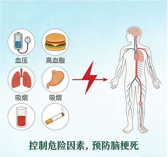 脑梗死的相关因素可分为不可干预与可干预两类,后者是预防工作的重点: