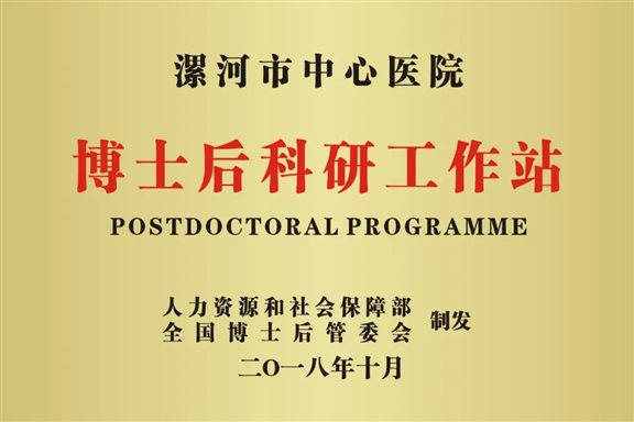 漯河市中心医院于2017年获批省博士后创新实践基地,2018年获批国家博士后科研工作站。自设站以来,医院始终重视工作站的制度建设和博士后人才的引进培养,先后制定了博士后科研工作站研究人员招收制度、经费管理制度、考核制度、奖惩管理制度、科研项目管理制度等一系列博士后研究人员管理制度,并与河南大学博士后科研流动站联合招收博士后进入工作站从事科学研究工作。