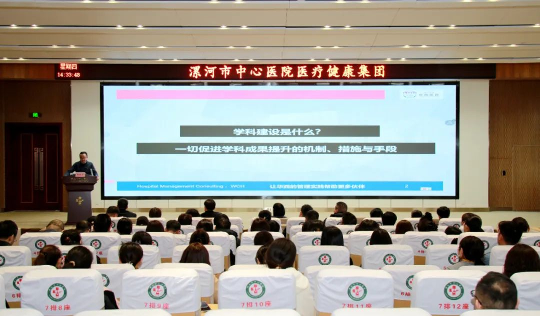 3月6日下午,漯河市中心医院医疗健康集团在中心院区3号楼五楼善济厅举办学科发展策略专题学术讲座,讲座特邀四川大学华西医院医院管理研究所所长王晓冬教授担任主讲嘉宾。医疗健康集团各院区业务主管院长、临床医技科室主任及副主任二百余人参与活动,共同探讨医院学科高质量发展的路径与策略。