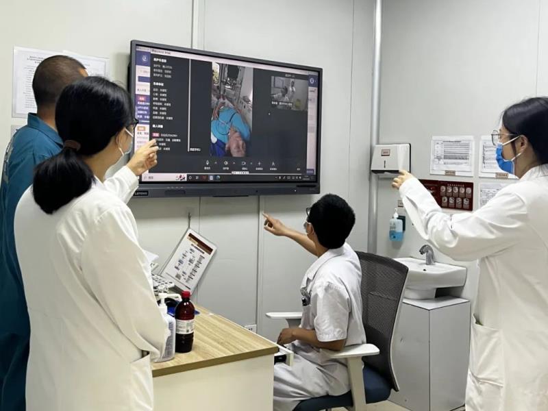 院前医生到达现场后,根据现场患者受伤情况,在系统APP上建立患者信息,并进行病人信息登记,利用系统发起音视频,将患者生命体征数据(血压80/50mmHg、心率120次/分、血氧饱和度88%)实时回传至医院创伤中心指挥大屏,创伤中心专家团队远程指导现场止血、固定等急救操作,并迅速对数据进行分析,制定抢救方案,第一时间通知手术室、输血科等相关科室做好抢救准备。与此同时,院内接诊会诊医生迅速将患者信息传至急诊预检分诊,为患者快速办理入院信息,真正实现“上车即入院”。