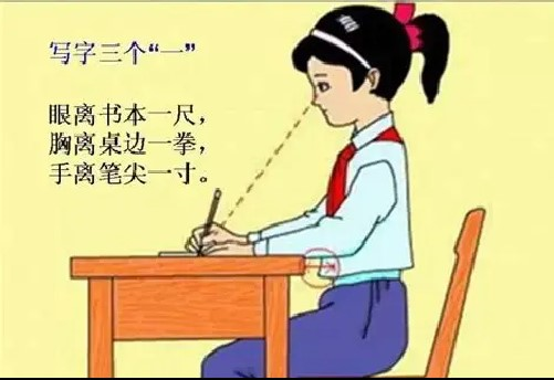 长时间近距离用眼是诱导近视形成的关键因素,儿童青少年要养成良好用眼习惯。一是读写做到“三个一”,即“一尺一拳一寸”,眼离书本一尺,胸距书桌一拳,手离笔尖一寸,不可平躺、侧躺或趴在床上看书,不可边走边看书,或者在移动的车厢内看书。二是保持光线适度,白天充分利用自然光线进行照明,同时要避免阳光直射;晚上除开启台灯照明外,室内还应使用适当的背景光源。