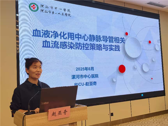 聚焦重点,实战防控:围绕“2025年国家护理专业改进目标”,市中心医院RICU科护士长赵亚奇结合丰富实践经验,分享了《血液净化用中心静脉导管相关血流感染防控策略与实践》。讲座内容干货满满,聚焦防控难点,提供了极具操作性的解决方案,为降低相关感染风险提供了实战指南。