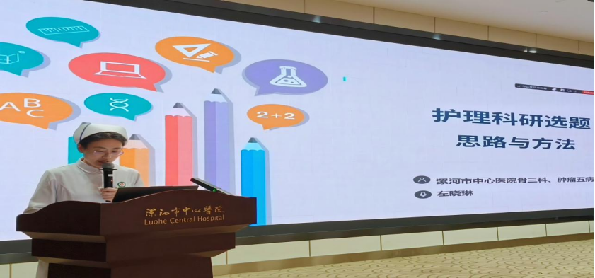 随后,左晓琳护士长以《护理科研选题的思路与方法》为题开展专题分享,从护理研究基础认知与核心研究程序、科研选题内涵及核心原则、PICO构建方法、临床实践的选题来源与四步选题法则,到研究问题的评价标准、陈述要素及假设构建,再到护理科研思维培养与临床选题实践建议,进行了系统、全面的讲解。课程结合临床案例层层剖析,将抽象的科研理论转化为贴合临床实际的实操方法,为护理人员开展科研选题工作提供了清晰的思路和实用性的指导,具有极强的针对性和可操作性。