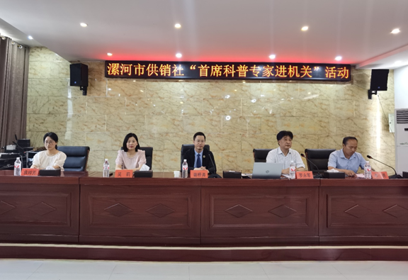 2025年6月13日上午,由漯河市科协组织的"首席科普专家进机关"活动走进漯河市供销合作社。漯河市科协科普部李勇部长、漯河市供销合作社党组书记刘承篪及班子成员出席活动。漯河市中心医院高血压科两位市首席科普专家谢桥涛、吴莉,和袁帅芳主治医师为100余名市供销合作社干部职工讲授了健康生活方式与高血压、高脂血症、冠心病等常见病防治及急救知识,专家们生动实用的科普讲座受到与会干部职工的热烈欢迎。
