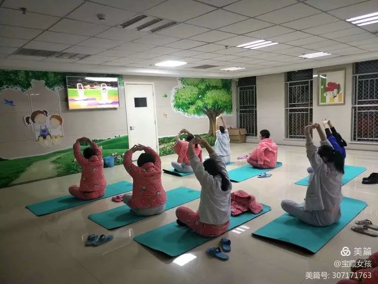 饭后,护士会带领大家做一些运动,今天带领大家做的是一节瑜伽!