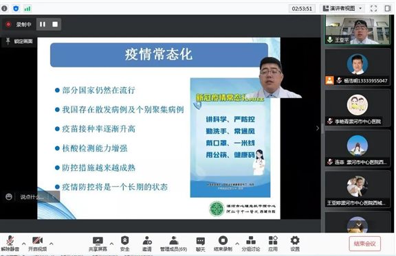11月20日上午,漯河市中心医院西城分院成功举办漯河市第二届临床心理学新概念与新技术研讨会,会议形式全程采用腾讯线上进行。本次学术会议是由漯河市医学会批准,漯河市中心医院、漯河市精神病专科医院承办的市级学术活动(项目编号:2021161900004)。