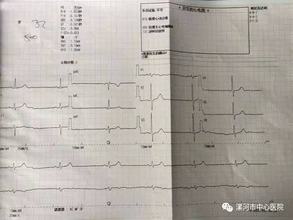 市三院安排患者做心电图后,发现心电图下壁导联ST段有轻微抬高,及时对患者进行初步救治并立即联系送往市中心医院胸痛中心进行治疗。