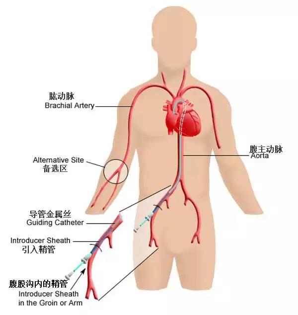 心脏支架是通过介入手术的方式植入的,我们不妨由心脏介入手术说起。心脏介入原理并不复杂。人体的血管是通向心脏的天然通道,而介入手术就是沿著血管进入心脏而完成的。