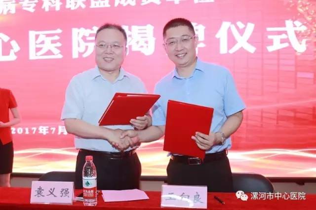 为进一步探索医联体协同发展的新模式,加快实现资源共享、优势互补、互惠共赢、联动发展。7月23日上午,我院与郑州市心血管病医院缔结为河南心血管专科联盟揭牌仪式在第三会议室举行。市卫生计生委副主任赵明阳,院党委书记王向良、工会主席刘东亮出席会议,郑州市心血管病医院院长袁义强出席会议。漯河及周边地区心脏专业医务人员150余人参加此次会议。会议由刘东亮主持。