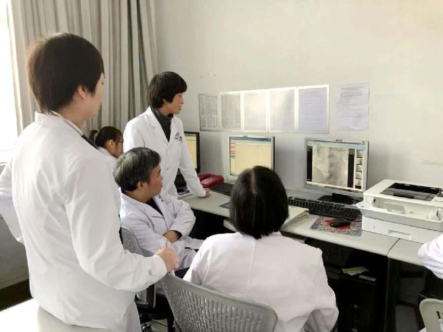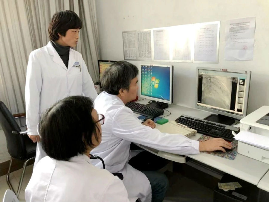 黄克钧教授与心内科一病区医务人员对科室复杂冠脉病变病人的病例及影像结果进行讨论分析。