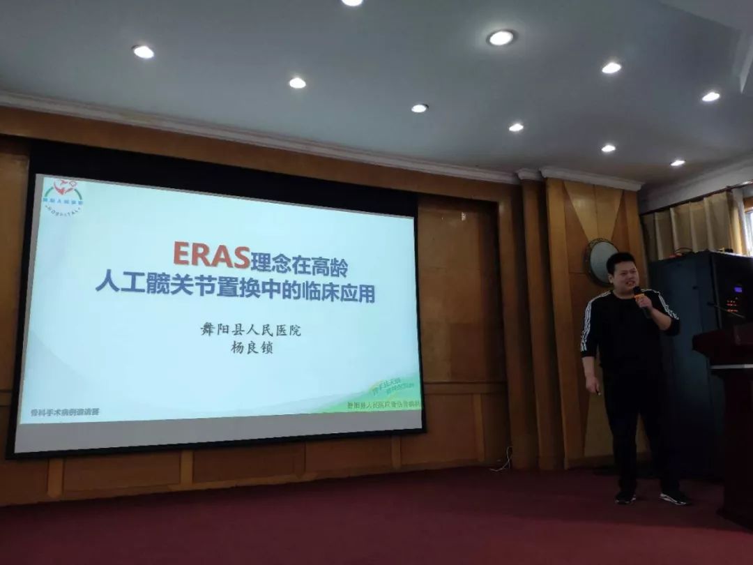 舞阳县人民医院骨病科主任杨良锁以“ERAS理念在高龄髋关节置换中的临床应用”为题作专题报告。