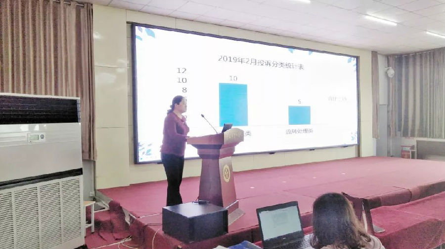 医患办副主任王丽霞分别从投诉管理和医患纠纷管理两个部分进行了汇报,重点对医院二月份投诉分类、医患纠纷处理思路、医患纠纷处理流程等方面进行了详细讲解,并希望广大医务人员转变思路,由“投诉和纠纷被动处理工作模式”向“投诉和纠纷主动预防工作模式”转变。