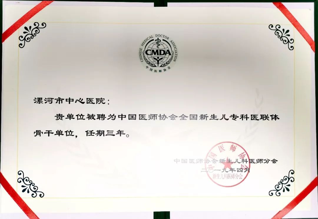 会上举行了中国医师协会全国新生儿专科医联体河南省网成立大会,我院被聘为中国医师协会全国新生儿专科医联体骨干单位。副院长李耀军教授当选为中国医师协会全国新生儿专科医联体理事会理事,儿科主任兼NICU主任郭晓燕教授当选为中国医师协会全国新生儿专科医联体专家委员会委员。