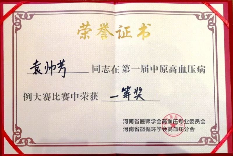 在第一届中原高血压病例大赛上,我院高血压科医师袁帅芳分享的《抽丝剥茧,找寻真凶——发现高血压的真相》病例报告,在决赛中取得最高分,荣获总决赛一等奖,这也是高血压科团队一年内第三次荣获省级病例大赛一等奖。