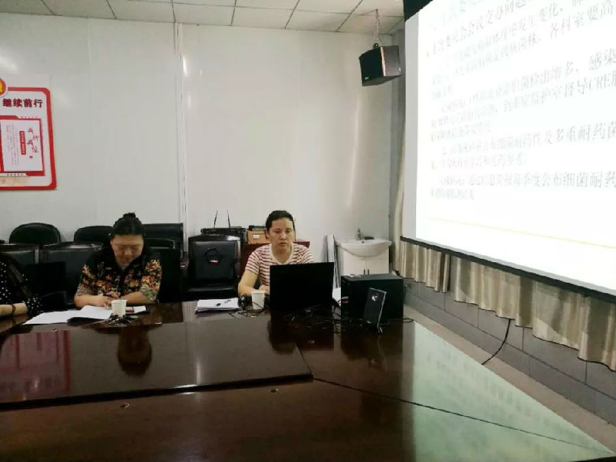 感染办主任赵红霞汇报了医院感染管理办公室第一季度工作完成情况、第二季度工作重点以及第一季度CRKP检出情况。