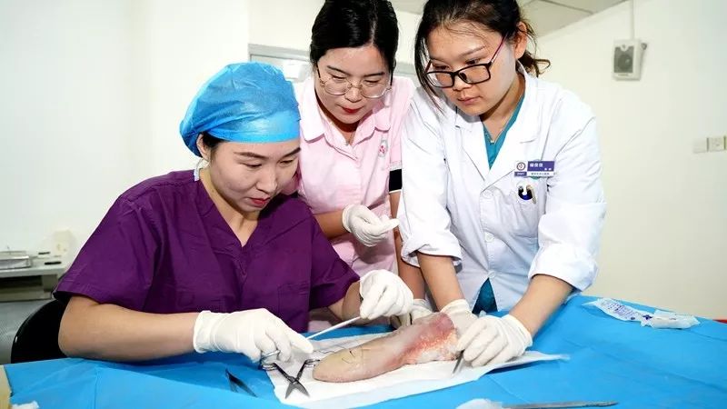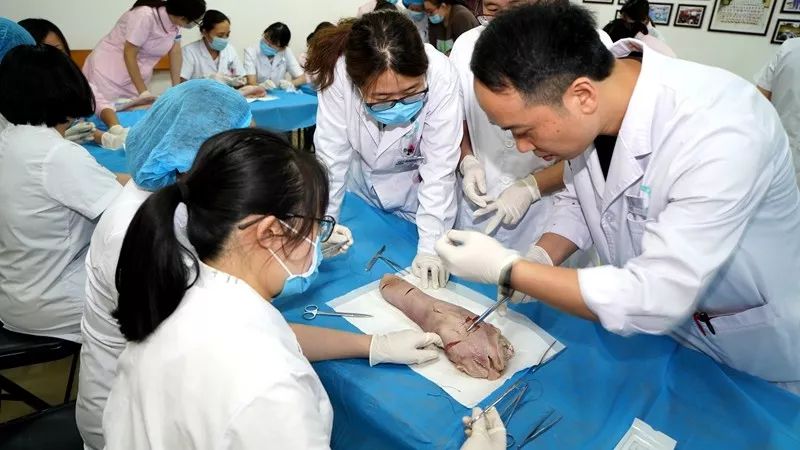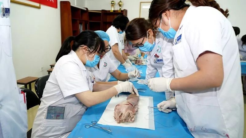 6月14日,我院2019年第二期产科基本技能培训班成功举办,产科30余名产科医师及助产士在动物标本上“飞针走线”,锤炼会阴缝合技术。