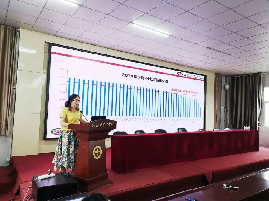 病案室主任魏霞分析汇报了医院7月份病历回收情况、病历等级标准及质控细则、7月份终末质控问题等内容。希望各位主任重视病历书写,认真学习病历等级标准,临床医生积极配合病案室工作,按照要求递交病历。