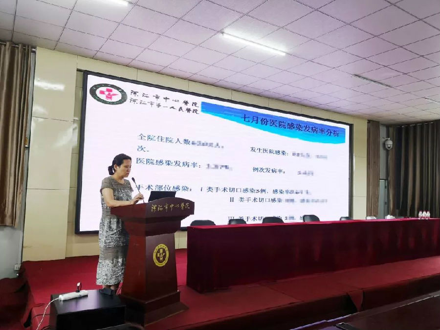 感染办主任赵红霞分析汇报了7月份医院感染发病率、多重耐药统计分析、医院感染迟漏报统计分析等内容。希望科室医务人员加强手卫生管理,严控院内感染。
