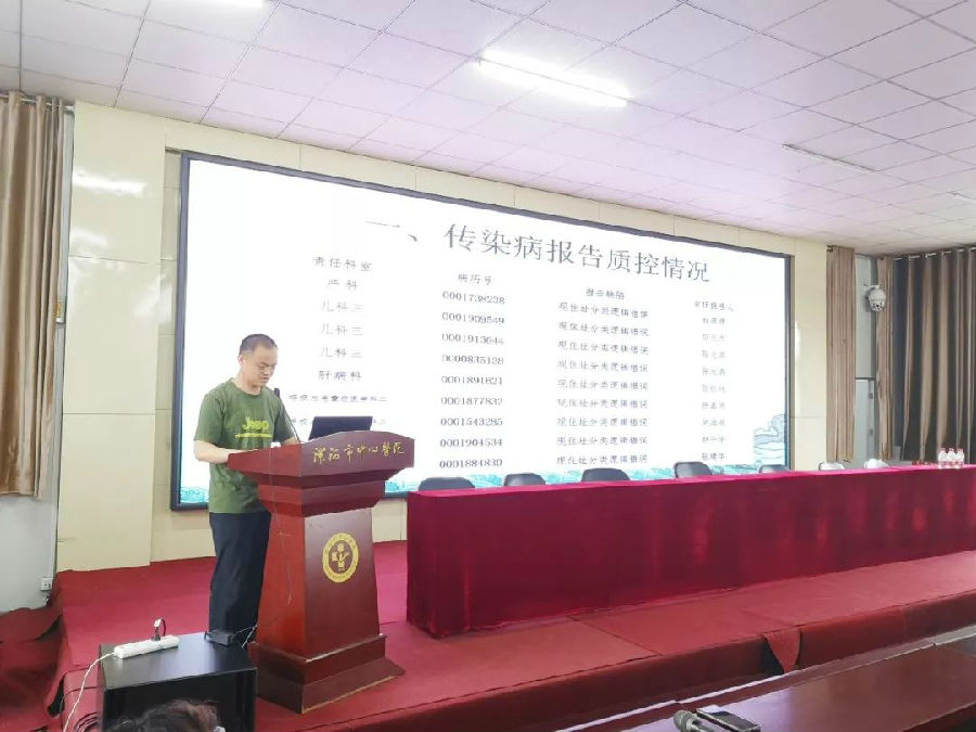 疾控科科长孔振向大家汇报了传染病报告质控情况、SARI病历监测质控、恶性肿瘤登记报告情况、死因监测质控情况等内容,同时报告了监测过程中存在的问题。