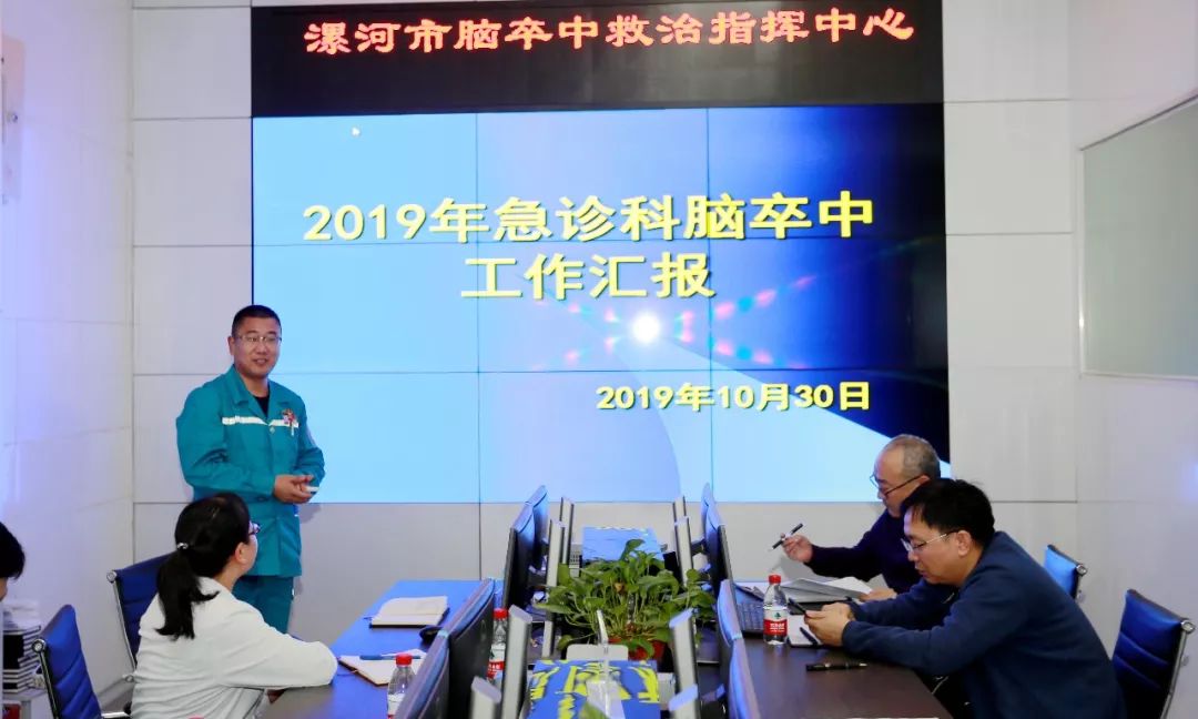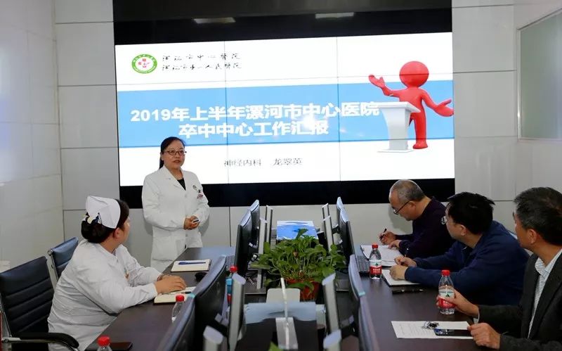 急救中心护理负责人张伟峰汇报了2019年急诊科脑卒中接诊情况,他介绍了急诊脑卒中患者分诊情况、存在问题分析以及绿色通道指标完成情况,并针对存在的问题提出了具体整改措施。