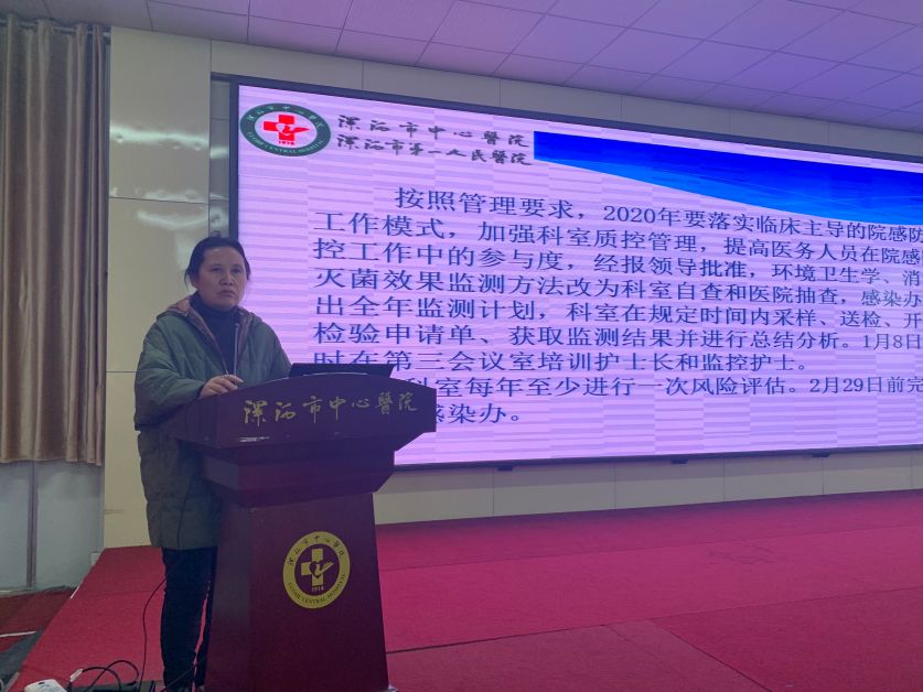 感染办主任赵红霞对10、11月份医院感染情况进行了质量分析,包括医院感染发病率、多重耐药菌检出率、医院感染迟漏报等情况。她指出,2020年医院将落实临床主导的院感防控工作模式,希望各科室重视医务人员职业暴露问题,进一步提升医务人员在院感防控工作中的参与度,从而加强科室质控管理。