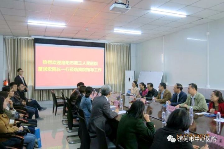 10月16日,洛阳市第三人民医院副院长苗润宏一行15人到我院考察交流胸痛中心建设工作。院工会主席刘东亮,市120指挥中心主任李静及胸痛中心相关工作人员陪同考察。