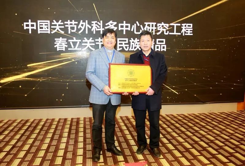 会上,我院被中国关节外科中心研究工程工作委员会授予“中国关节外科多中心研究工程临床基地”,副院长李耀军(右)代表医院上台领牌。