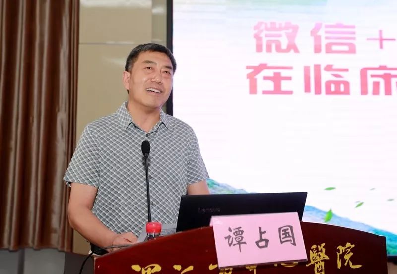 谭占国首先代表医院向不辞辛苦,不畏酷暑莅临漯河授课的郑州大学护理学院院长助理兼实验教学中心副主任张艳、郑州大学第一附属医院临床技能训练中心副主任李胜云表示热烈的欢迎和诚挚的问候。他指出,相信通过诸位临床护理教学专家的精彩授课,必将会使全市临床护理教学质量和水平得到大幅度提升。