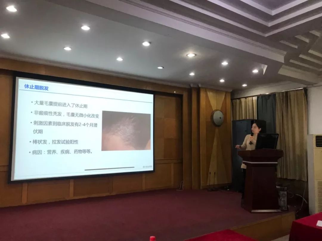 漯河市中心医院皮肤与性病科主治医师赵丽阳以《毛发镜的基本术语和基本改变》为题,介绍了毛发镜的基本知识、基本术语及毛发基本改变,使大家了解了各种毛发疾病的核心特征及鉴别诊断,并通过典型病例的临床照片和毛发镜图像的对比分析,便于大家记忆和运用。