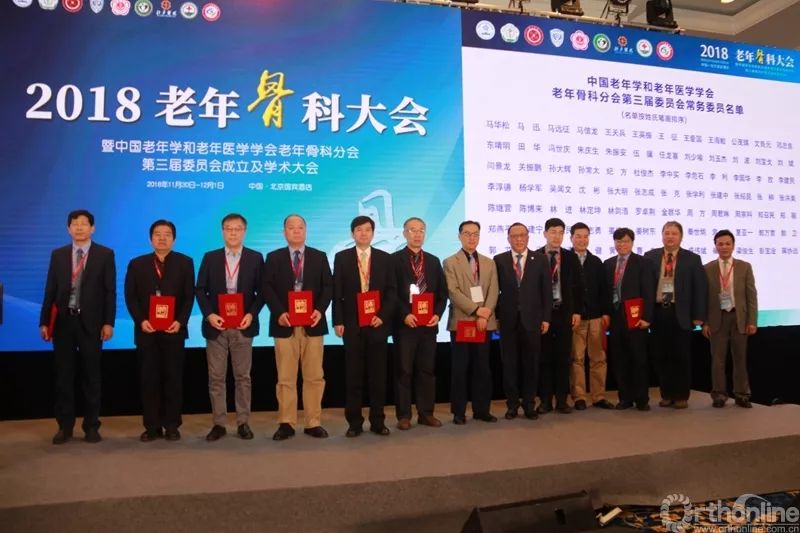 2018年11月30日晚,受中国老年学和老年医学学会委托,学会第六届理事会理事、清华大学附属垂杨柳医院院长任龙喜教授主持了老年骨科分会第三届委员会换届流程。学会任命曹永平教授为新一届分会主任委员、关振鹏教授为新一届分会总干事。分会特聘北京大学第三医院党耕町教授为第三届委员会名誉主任委员,陶天遵、李佛保、陈百成教授为特约顾问。经过分会组织的民主选举,产生了第三届委员会全体委员333名,常务委员89名(名单见文末)。