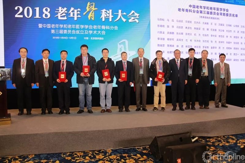 中国老年学和老年医学学会老年骨科分会第三届委员会副主任委员李放教授主持大会开幕式,党耕町教授致欢迎辞。随后由第三届委员会常务委员兼总干事关振鹏教授宣读换届成立大会的全委会决议,杜鹏教授宣布第三届委员会全体委员名单,新任主任委员、总干事、副主任委员、常务委员上台领取了聘书。