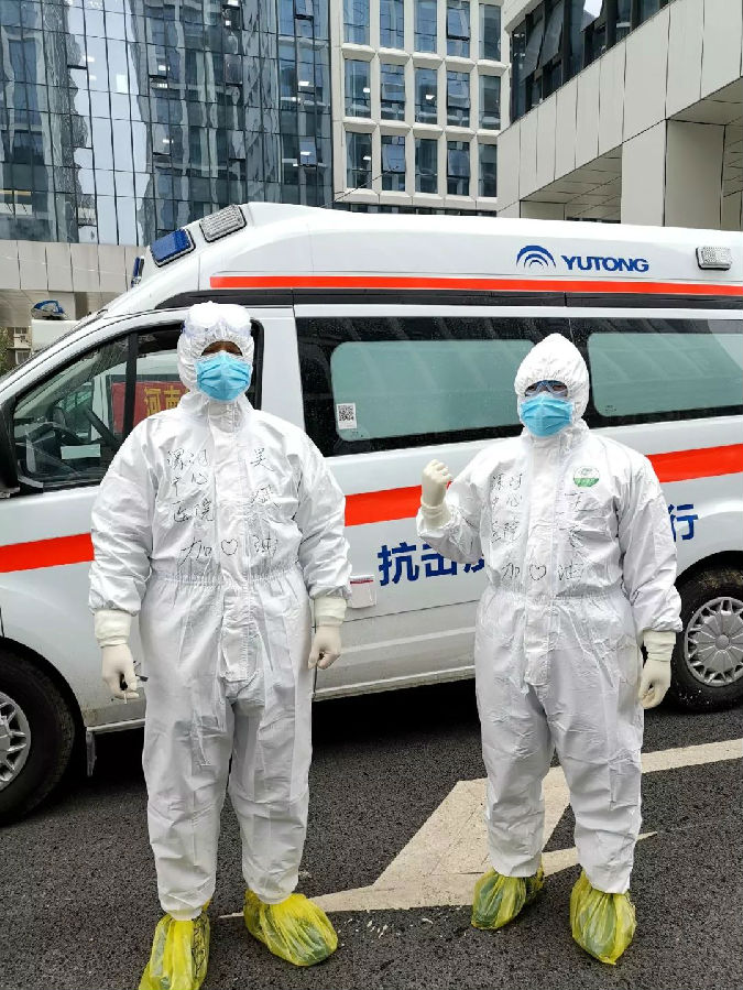随后,李晓斐和队友们一直将患者送到了金银潭医院综合病房楼7楼病区进行了床旁交接,并与患者一一告别,他们才离开医院。“看到患者朋友和家属们期待的眼神以及安全送达目的地后的感谢,再苦再累,我们都感到值得。”李晓斐激动地说。