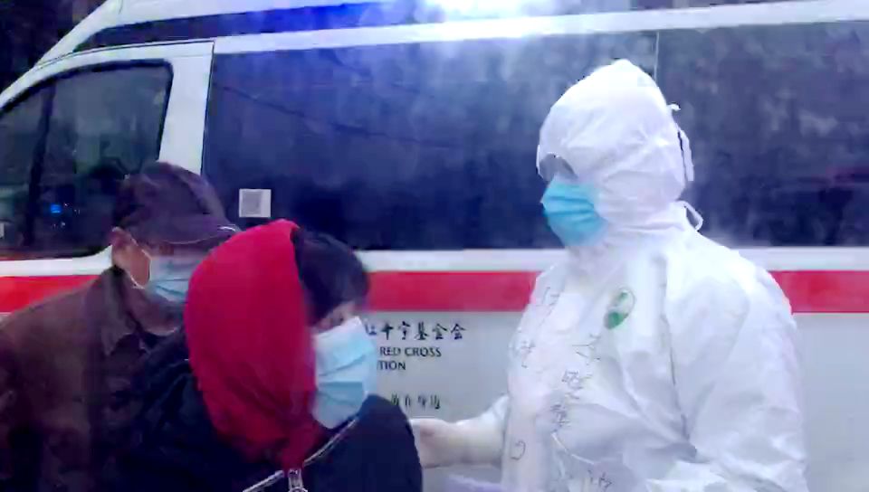 途中,王飞严密监护,通过和他们聊天得知,他们已发病10多天,病情不见好转,儿子一家人也在隔离,所以无人照顾,目前生活物资也紧缺。王飞的心里酸酸的,眼泪直在眼眶中打转,他知道两位老人需要更多的帮助与鼓励,隔着手套与隔离衣,他紧握着大爷的手说:“一定尽我们所能帮助你们!”