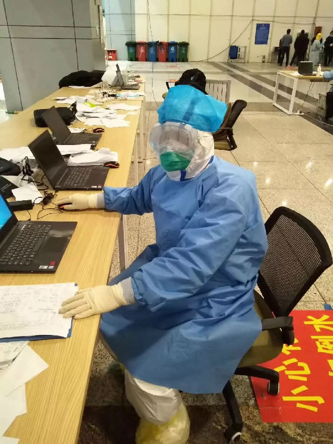 到达方舱医院后,她还要对每一位队员的防护措施给予质检,确保各项防护措施完备才能进舱。