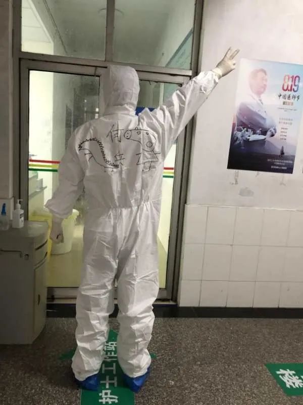 你总说“作为个人,面对未知的事物,我们也会畏惧,也很弱小,但作为医生,在救死扶伤,守护大众健康的职业使命面前,我们也很强大,所以一定要牢记自己的使命,对得起曾经宣誓过的希波克拉底誓言,作为党员,更要冲在前线,模范带头,这个时候我们再不顶上去,后面的父老乡亲还有我们的家园该怎么办?如有机会,我要和他们一起战疫”,你曾多次向医院提出申请要去一线。2月25日下午,因疫情需要,你作为医院第三批医护人员进驻漯河市新冠肺炎隔离病区,接到通知的你,毫不畏惧的说“该我上场了”。医院还专门为你们举行了“送行”仪式,我看到你高举着旗帜,笑容里依旧是那么从容、淡定。