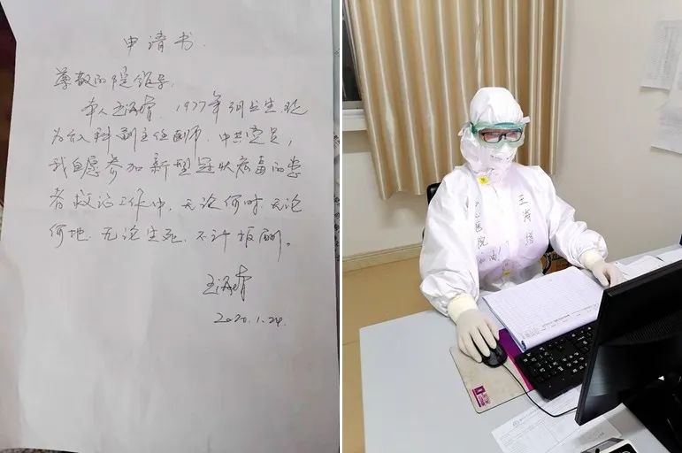 在疫情爆发之初,介入科王海增副主任医师就第一时间写了请战书,参加了医院组织的各种培训,随时准备着开赴抗疫最前线。他知道七十多岁的父母一定会支持他,但还是选择隐瞒,害怕他们担心。妻子陈红娜是六院的一名医生,坚守自己抗疫岗位的同时,始终给他以战友般的支持。作为两个孩子的父亲,在给小儿子过完1岁生日的第二天,就奋勇出征,冲在一线。