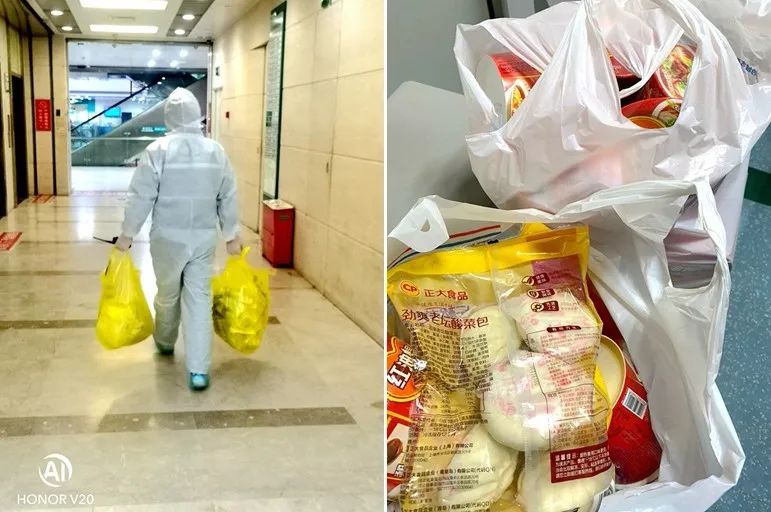 我们转向窗外,正是昨晚的那位阿姨,可等我们追出去的时候,阿姨已经走远了,我们都非常感动,都说没想到阿姨真的给我们送吃的了,那位检验科的同事说“你们就收下吧,现在全武汉人民都非常感谢你们来支援的医疗队”。