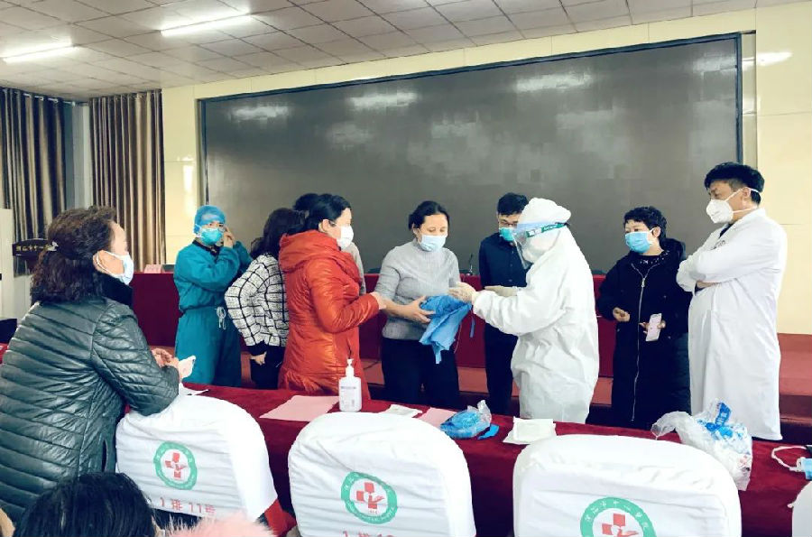 1月25日,全院护士按照医院新冠肺炎防控领导小组的要求,放弃休息,坚守岗位。1月26日,经过防护流程培训的4名护理人员支援发热门诊。
