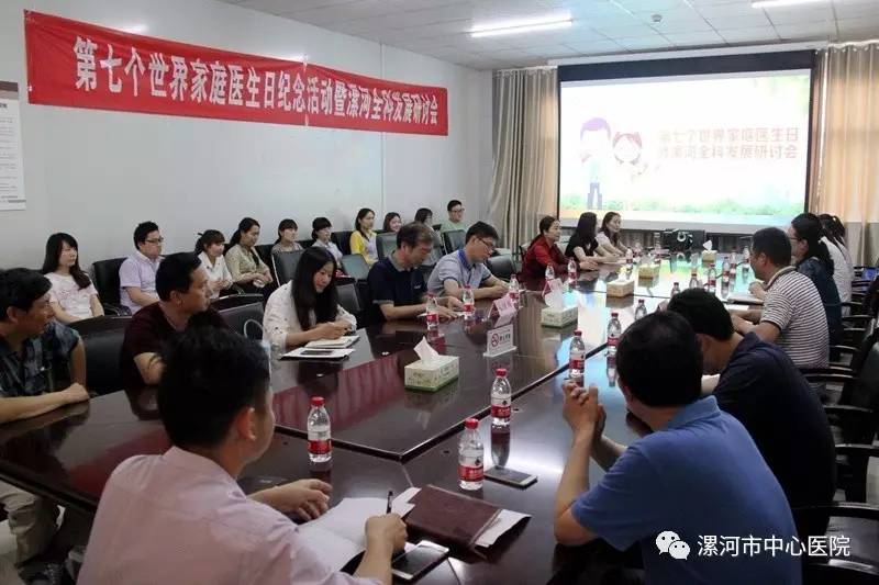 在第七个世界家庭医生日来临之际,5月18日,我院成功举办了“第七个世界家庭医生日纪念活动暨漯河全科发展研讨会”,市卫计委医政科科长杨轶出席研讨会并讲话。医务科、全科医学科、科教科负责人和医院全科基地教师、住院医师代表、基层基地负责人、全科医师近50人参加了研讨会。会议由科教科科长时亚新主持。