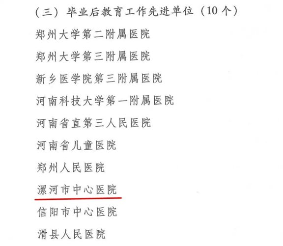 漯河市中心医院荣获2020年度河南省“毕业后教育工作先进单位”。