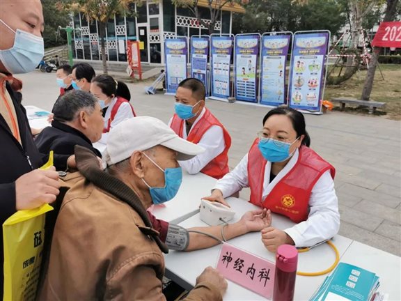 周边群众积极参与到义诊活动中来,现场气氛热烈,医护专家志愿者们有条不紊地开展工作,现场共免费测血压 110人次,测血糖 60人次,完成卒中风险评估量表115份,发放脑卒中防治知识手册、中风120识别等宣传资料近200 份。