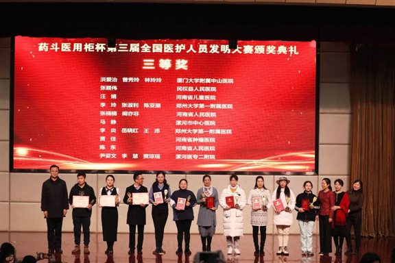 12月29日,在河南省卫生健康委员会的大力支持和指导下,由医药卫生报社主办的“药斗医用柜杯”第三届全国医护人员发明大赛颁奖典礼在郑州举行,来自全国的医护获奖者代表以及医疗机构医护专家、临床一线医护人员共计300余人参加。
