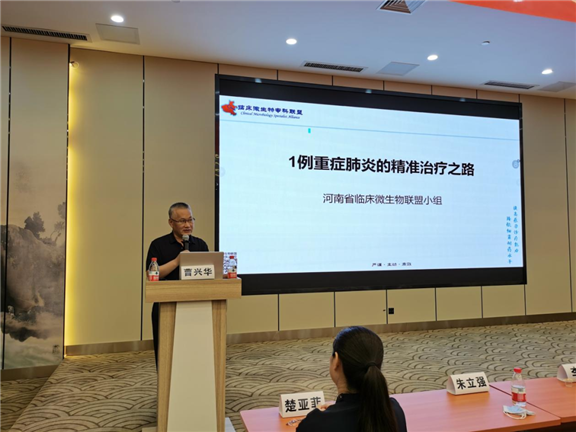 漯河市中心医院检验科主任曹兴华以“1例重症肺炎的精准治疗之路”为题,从临床表现、化验结果、影像学资料等多角度进行抽丝剥茧,与漯河市微生物同仁一同探讨了重症肺炎患者在临床治疗中的诊疗思路和诸多细节。大家热烈参与了讨论。