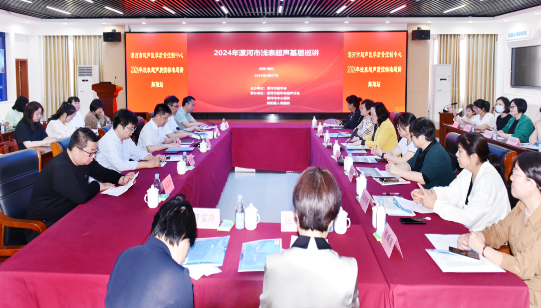 4月27日,由漯河市医学会主办,漯河市中心医院承办的“2024年漯河市浅表超声基层巡讲”在舞阳县人民医院成功召开。舞阳县人民医院院长赵乐出席开幕式并致辞。漯河市医学会超声专业分会主任委员、漯河市中心医院超声诊断科主任刘俊香在开幕式上介绍了全市超声诊断专业基层巡讲的意义和实施计划。会议由舞阳县人民医院副院长魏廷举主持。