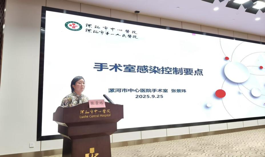 漯河市手术室护理专业委员会主任委员、市中心医院手术室护士长张景玮围绕《手术室医院感染控制要点》,阐述了环境管理、人员管理、无菌技术操作、手术器械及物品管理、医疗废物的管理、卫生学监测等各个环节的重要性,更好地降低手术室医院感染的风险。